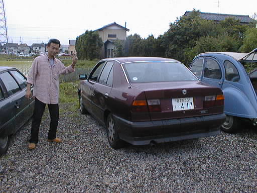 そんなこんなしていたらMin^2とKImKimがやって来ました、ランチアのテドラをyahooのオークションでゲットしたそうです、後ろから見ると日産のプリメーラみたいです(笑)