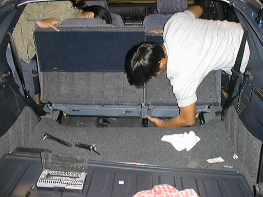 後部座席を外します、椅子下側の隠しパネルはトルクスドライバーT15で外します