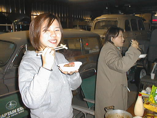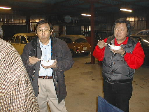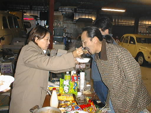 某所共同ガレージのいつもの(笑)忘年会です、何日の何時からと言う正式なアナウンスが無いまま人が集まって来ました。 お昼から集まった掃除グループは掃除終了後近くのイタリアンレストランで食事後夕方を待っています 夕暮れ時、すでに飲んでるシトロエン乗りのみなさん ようやく開始、ガレージの中では味見からスタート 食べ始めます 次のページへ