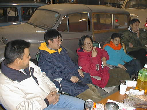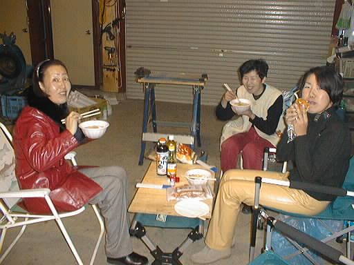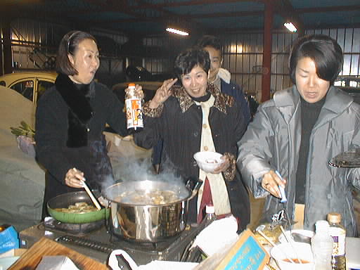シトロエン乗りの夫の妻達の座談会も開催されていた 後ろに有る車はシトロエンでなくモーリス・マイナー・トラベラー 机の上はお菓子や飲み物であふれています 婦人部による鍋物作成 そんな中でも勉強する人 次のページへ