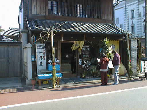 その3です 陶器のヤマワ、お皿でしょうか その1にも出ていましたが団子の門松のお休み所 つけもの屋さん、大根かな? 蕎麦屋さん、見にくいですが右の門松は「蕎麦と箸」です こちらの漬け物屋さんは「かぶ」のようです その2に戻る その4に進む