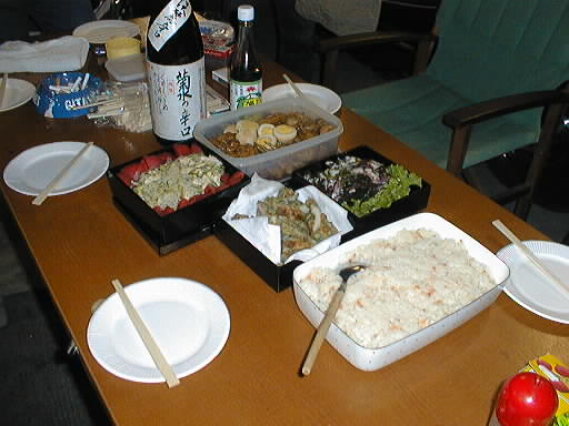 川越もお昼前は雪が降っていました、そんな中いつものガレージでお花見(どこに桜が有るんだ?)との情報に行ってみるとすでに料理の準備は進んでいました。