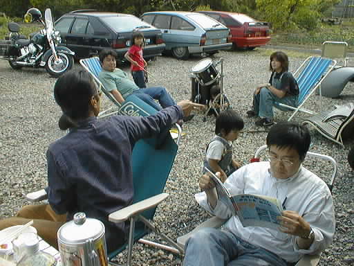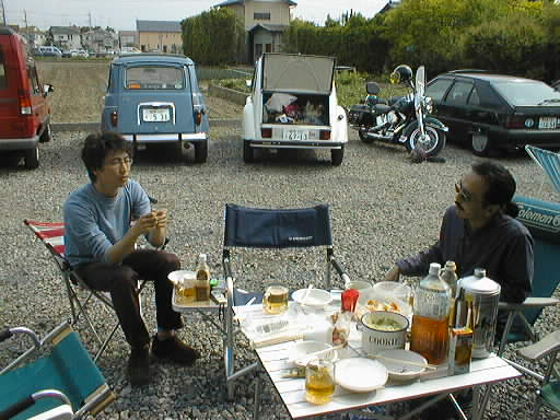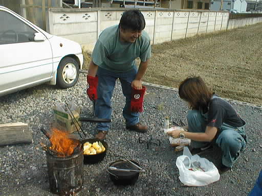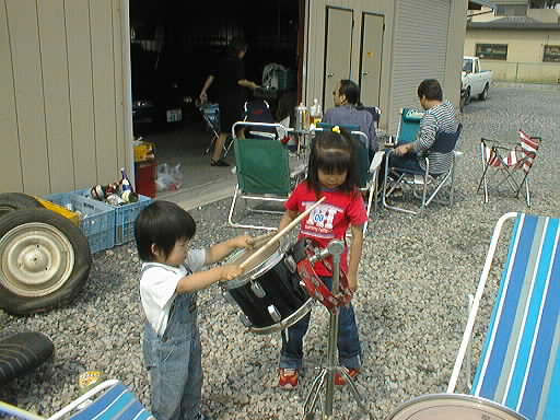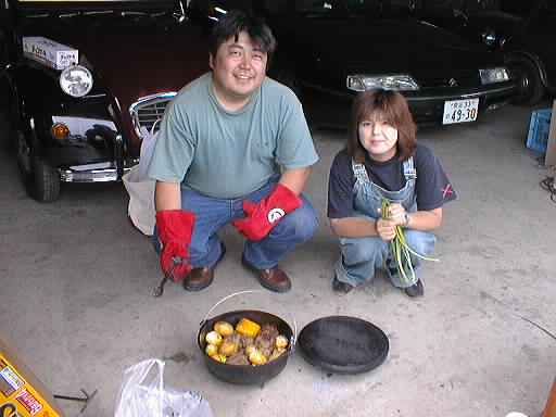 いつものガレージで「ダッジオーブン(調理器具)」を使った料理を作るとの情報に行ってきました。 まずは火熾し 鉄鍋(ダッジオーブン)の中に肉とか野菜とか入れて置き火と重たいフタの上にも炭を乗せて加熱します。 その間に子供達はドラムで遊んでます 425ccの2CVを整備する人も居ます 昼食が出来る前に一杯 完成しました(湯気まで写っていないですがホッカホカです) 次へ