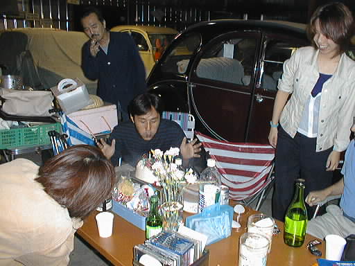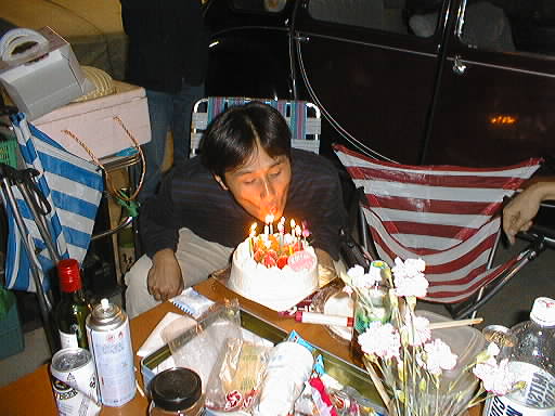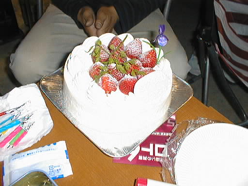 カリスマ夜活部長の誕生日を祝っての「夜活」 ところで何歳? この後8等分されるケーキ 実は9人居た(笑) お皿を舐める人(笑) #そういえば「11人居る」ってマンガが有ったなぁ(萩尾望都だったかな?)