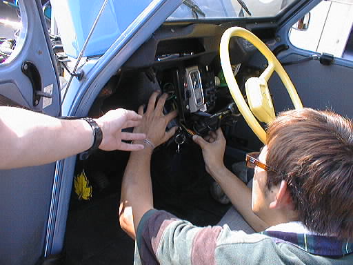 昨日も来ていたのですが完全には治らなかったので日曜も来て修理です ワイパーを動かすとヒューズが切れる、ウインカーが出ない、右側のストップランプ?スモール?が点かない、と色々満載です まずは優先順位を考えて作業開始 ウインカーが出ない原因を捜して行きメーターパネルの裏が妖しいと睨みました。 リレーへの配線がおかしいのとリレーがダメになっていました エンジンのかかりもイマイチ、でも時間切れです、次回はスモールランプ不点灯の修理かな