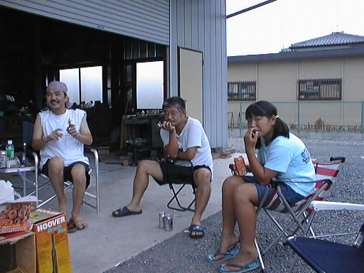 今日もいつものガレージで「のんびりモード」 天気も曇りで昨日よりはすごしやすい日曜日でした くつろぐ人達 BXが欲しいとやってきた「新人さん」とりあえず挨拶の図 実際の購入計画や価格などについて話しているフリをしている人達 夕方になると埼玉は風も有って良い気分になっていました この後日が暮れた後、場所を変えて深夜まで夜活(みんな、仕事は大丈夫か?) 解散は23:00を回っていました。