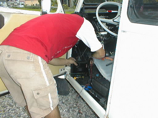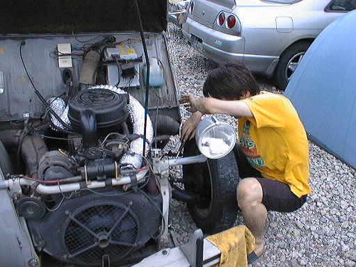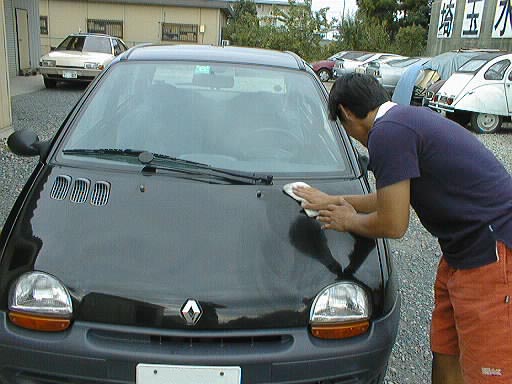 今日もいつものガレージで「のんびりモード」 ファンキーな国産車もへへマーク付き(笑) カーステレオ交換の2CV ワックス掛け訓練中 暑い中大変だ... 助手席をバケットからノーマルに変更した人、誰が乗るのかなぁ ami!