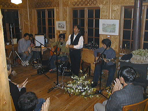 2001年10月28日(日) レストラン「ヒルトップ ファーム」(TEL 0493-56-5240)にて「英田舎」10周年と「ア・ターブル203」オープン記念のイベントに行ってきました 1部終了時の挨拶 さて2部開始ですおなじみの顔が写ってます(笑) 前説..と言うことにしておこう 前に戻る 次に行く