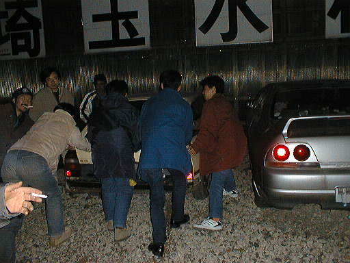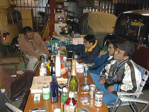 2001年12月15日(土) 埼玉の「川の博物館」のオフ会も無事終了していつものガレージで夜活(笑) 到着したときにはすでに始まってました おやくそくの「作業」中 サンタ人形が気分を盛り上げています この後はジョイフル夜活、帰宅は3時(笑) 次は無いので鯖に戻る