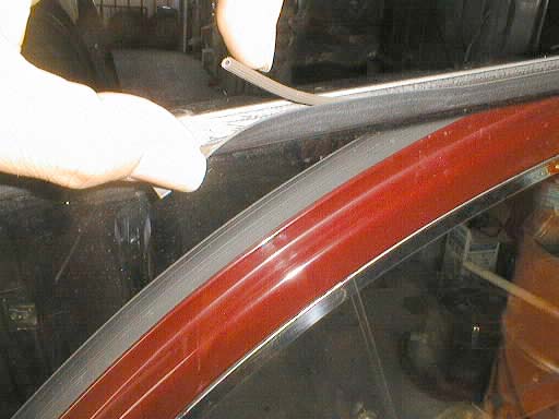 長年使ったゴム製品は変形してドアと窓ガラス(枠)とに隙間が出来てしまうのでゴムパッキンの内側に「網戸張り替え用のアミ押さえゴム」を入れてゴムを浮かしてドアとの当たりを調整します。