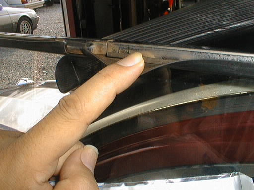 窓を開けてこの部分をチェックしてみました、閉めた状態で2mmくらいの隙間が出来てました(写真はすでにゴムが少し見えてます)