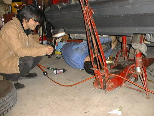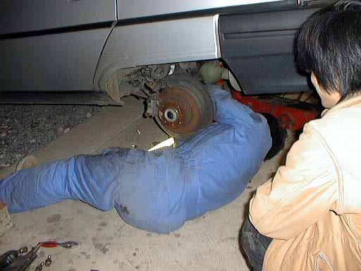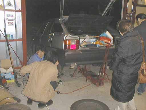到着したときは日も暮れてきて、すでに作業も半分終わってましたがBXの後ろ足を状態の良いOH後そんなに走ってないけどすでに廃車が決まってる車から外して新しく買ったそれより新しい車に交換していました