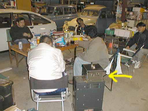 到着したときは日も暮れてきて、さらに寒くなってきました外での作業が終わった人達は中に入ってストーブで暖をとってます。