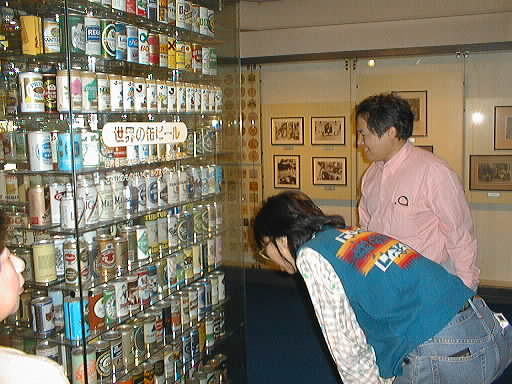 世界の缶ビールの展示、昔の懐かしい缶も発見出来ました