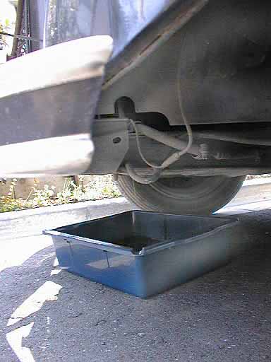 レンチ)で緩めます。 少し緩んだらボルトの下にオイル受け皿を置いて逃げら