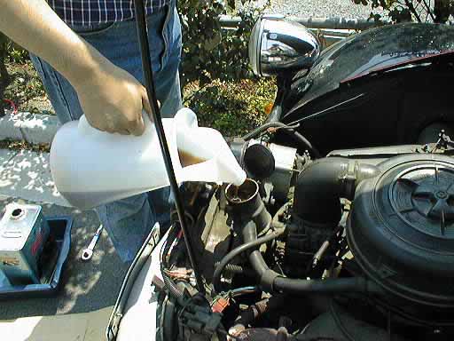 オイルジョッキに2リッターほどオイルを入れてオイルの入れ口からゆっくり