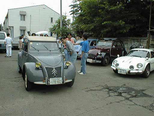 集まった2CVは駐車スペースに入れないので別駐車場や路中に(^^;