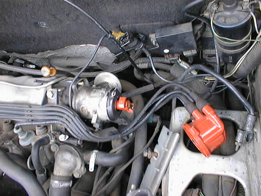 ディストリビューターのキャップ(ハイテンションコードが出ているオレンジ