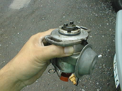 外したディスビ、O−リング(マツダ型番 ZZVB-06-6T2)を外して新品に交換
