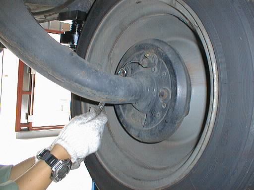 せっかくリフトに上げたのでリアのブレーキを調整してしまいましょう