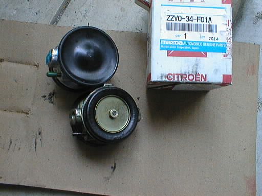 友人宅のコンクリート床のガレージに緑の池が出来ました、自宅の駐車場は砂利、土だったので気づかなかったのですが「とほほ」です、気づくとLHMの量が少ないとメーターパネルでも赤い警告灯がついていました、早速のぞき込んで原因を確認するとリアのハイトコレクターあたりからLHMがポタポタ漏れています。マツダに部品を注文して(ZZV0−34−F01A)ITONAMIの楢林さんに手伝ってもらい交換しました