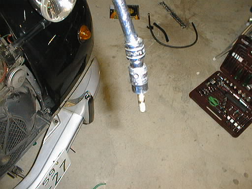 写真は左のフェンダーの所のガソリンのライン、ゴムホースがヒビヒビで怖いです(^^;