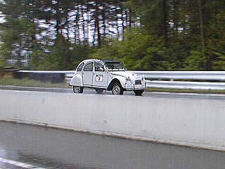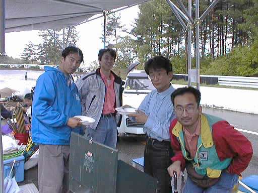 ゼッケン13番「サビサビスマイル」号は602ccではなく6Vバッテリーの425ccのモデルです、これが思いの外早い! う〜ん、この色は緑のバックには映えますね ゼッケン3番は「めしゃーまだかね」チーム、車載カメラ搭載のMin^2のチーム、3rdドライバーは女性です ピットでのお食事風景、今回レースに参加してしまったので自分の所は取らずに取ったのはこれだけです(^^; サビサビ2CVを追いかけるルノー8 鯖?のページに戻る