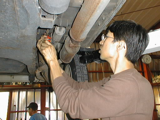 1998.10.11 昨日買った2CVを乗ってきた人が教わりながら車高調整を行ってました リフトアップされた2CV(手前はフェラーリ、たしか348?) リフトアップされているので作業は楽です この後クラッチ調整に挑んでおりました(^_^) 日記に戻る