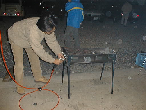 炭をおこすのにコンプレッサーのエアーを使う人(ちなみに「たき火の会」の会員だそうです)