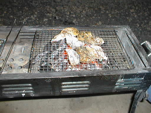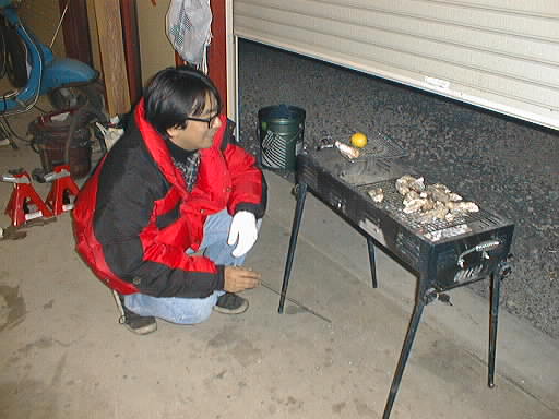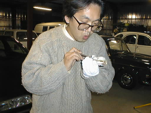 FACTORY M&Hのホームページの来訪者が丁度○○人目に当たった記念として牡蠣が送られてきたとの情報に暇な人たちがいつものガレージに集まりました