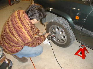 すっかり暗くなったいつものガレージではすでに夜活のメイン「ゴールデントーク こばQ」自らインパクトレンチを駆使しホイールを外していた