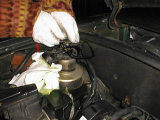 ストラットの上に付いている配管留め?を外す、壊さないように注意