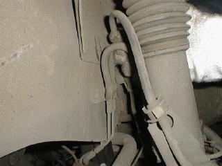 次ぎにリークバックホースのゴムホースを車側のパイプから外します(ってどのホースだ?)