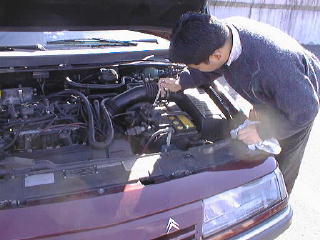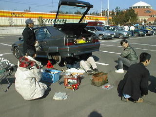 道の右側に見えてきたのがパティオ、会場である 到着早々XMのエンジンをいじる参加者 黒のDSはキレイでした、持ち主は来なかったらしいです 持ち主は最近「ソムリエ」で有名らしいです 問題: 金色の車の名前は? BXにもぐる人達と遠巻きに見守る人達 その1 は今見てます その2 その3 その4