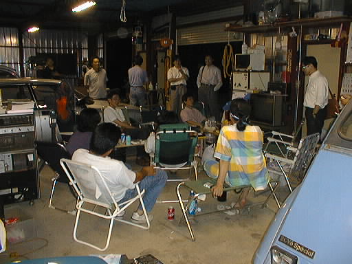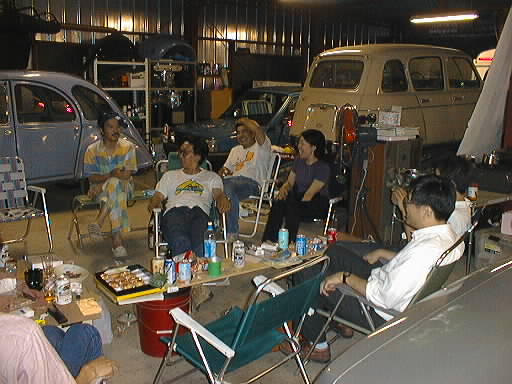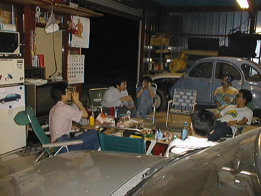 遠方より夜活参加との知らせに取材してきました、ストロボが届かなくて暗いのですが写真はガレージの集まった人達です