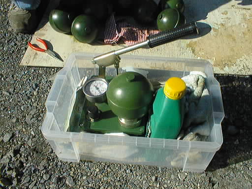 大阪からCXを買いに来た人と一緒に三濃ツアーを行いました(1999.11.28) 最初の一カ所目でCXの状態チェックと説明を受けてるところ(と思われる) 時間的にも3カ所は回れないで次の場所にトランスポート 2カ所目に行く前に某所にてスフィア(アキュムレーター)の内圧を測る機械の見学(こちらは市販品) こちらは自作品 パート2へ進む
