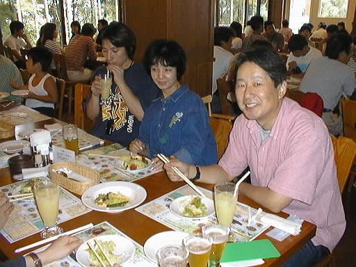 パート7 食事風景続き(ドライバーが飲んでいるのはノンアルコールの「スカラベウス」大麦・小麦モルト(麦芽)を原料として。乳酸、クエン酸、酢酸などを含むドリンク、飲んだ感じは甘くないジンジャエールにレモンを入れたような味です。 一杯100円、お持ち帰り用の瓶詰めは250円でした(2000/09/24現在)、持ち帰りならビールが良いかも 戻る<< >>進む