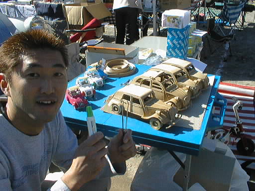 明けて日曜日のグランド駐車場、シトロエン車のペーパーモデルの展示販売、スゴイ出来です