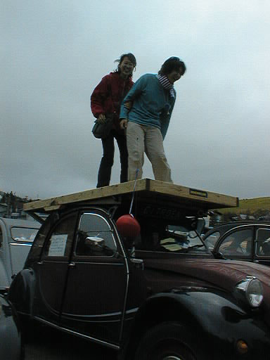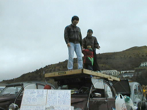「赤/黒2CV友の会」では「2CVサーフィン同好会」を公開していました 昨日結婚した長谷川さんの車はこの日の為に改造され、車上からの景色と2CVの「すばらしいサスペンション」を体験してもらっていました
