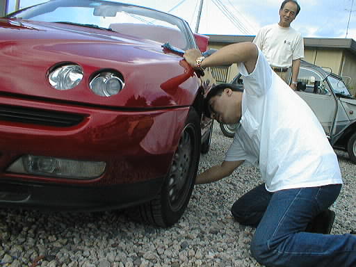 車の整備をする人、神戸から来る人、洗車する人、それとアルピーヌA310が来てました