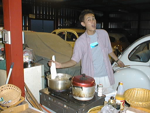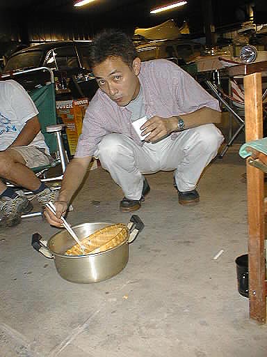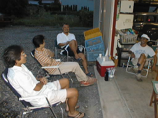 いつのもガレージにて「のんびりリフレッシュ」、素麺を茹でる人、アッと言う間に無くなって茹でた本人には少ししか残ってない(笑)、その後暗くなってもゴールデントークの嵐でした。