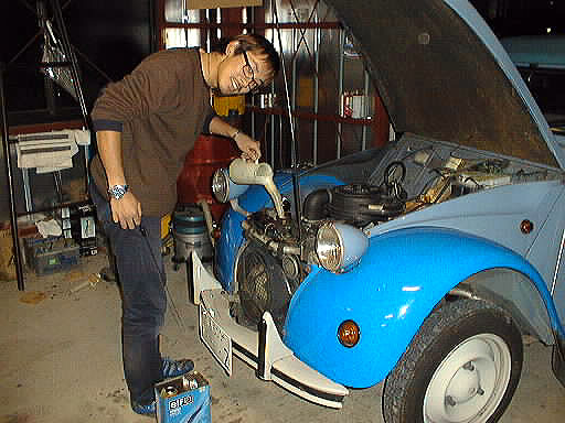 最近更新していなかったのですが連休中日のガレージです、久しぶりに2CVのバッテリーを充電してエンジンオイルも交換。 さすがに半年近く置いて有ったのでガソリンが下がっていてそのままでは始動しませんでしたが呼び水の「燃料スプレー」を吹いてもらって始動、久しぶりの2CV運転になりました。 エンジンオイルはeggplantから購入した20W50のオイルを使いましたが気温も秋になったこの頃なんだか2CVも嬉しそうです。