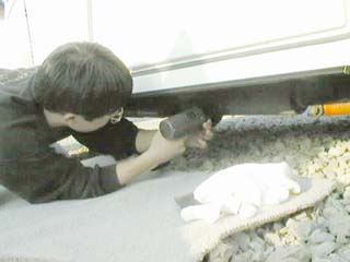 13日の金曜日、だというのに会社を半休取って「BXのブーツ交換パート2」です。作業をしていたら田伏さんが2CVでやってきて下の方から「ギコギコ」音がするとのことで「ポー」」のまん中へんに2mmくらいの穴を開けてスプレーグリスを吹き込みました、効果は即日〜2週間程度経たないと出てこないそうですが、お約束の「とほほ」はスプレーグリスのノズルチューブを「ポー」の中に落とした事です(^^; でも中で曲がるから多分問題ないでしょう(^_^)