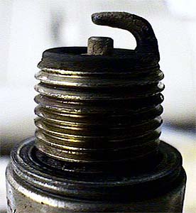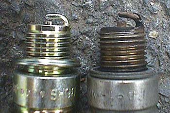 昼休みに会社の駐車場で2CVのプラグ交換をしました、前の人がどのような使い方をしてきたか解る部分です、前の車の時は国産のNGK製BP6HSを使いましたが、情報によると西武の2CVの取り説はこの部分が誤記で実際はB6HS(Pが無い)だそうです、ただし今まで自分でも1年、他の人達も使っているので多分BP6HSでも問題無いでしょう(Pが付くと中心電極の突き出しが増えます、取り替えて試験したところ排気音が少し力強くなりました、アイドリングはPの無い方が安定するような気がします)気になる減り方はこれ、多分5万キロ使用?外部電極(曲がってる先を見て下さい)はめいっぱい減ってます、中心電極も丸くなり寿命を越えています、新品と比較すると違いが解ると思います、