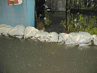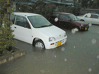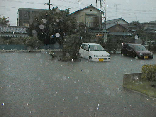 日記の更新が送れましたが(今日は30日)関東から東北を襲った豪雨の影響でウチの前の駐車場も水浸しになりました。 土嚢(どのう)でくい止められる水、水浸しその1、その2、です。