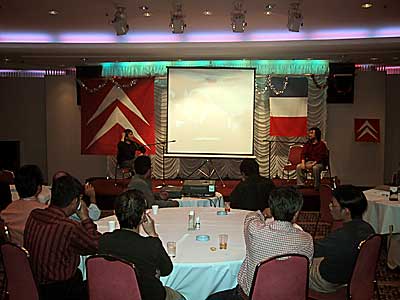 BXは1982年発売ですから、2002年で20周年を迎えます。これを祝して全国のBXが一堂に会してはどうかとのことで、www.bx.citroen.orgの楢林さんの主催で、ミーティングが日本の真ん中静岡県掛川市のYAMAHAリゾートつま恋で5月17〜18日に開かれました。なお、これは名車DS及びSMの合同ミーティング、DSM4との併催となっていました。