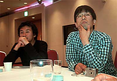 私の右側に座っていた、BX16Vの伊能さんとそのお友達です。ストラップまでお揃いのデジカメを持っておられてびっくりでした。これは息子が撮った写真です(^^; |