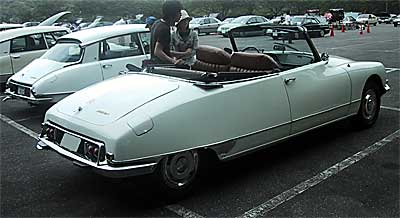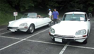 白いDS2台。左の方は珍しいDécapotableです。登場された時は幌をかけておられたのですが、その状態での写真は取り忘れていました。 |