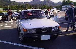 なぜかサーブであらわれた、ひろなか氏。このクルマのトランクの中には、なぜかLHMのボトルが転がっていた。サーブにハイドロはついてないだろうと思ったが、なんでも当人からLHMが漏れたときに飲ませるらしい。 |