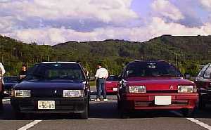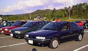 うちのBXの方が明らかに車高が低い。スタイルでは谷口号に勝っているが、乗り心地は負けている気もした。右にちょっと写っているのはおかの氏のZX。 |